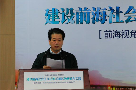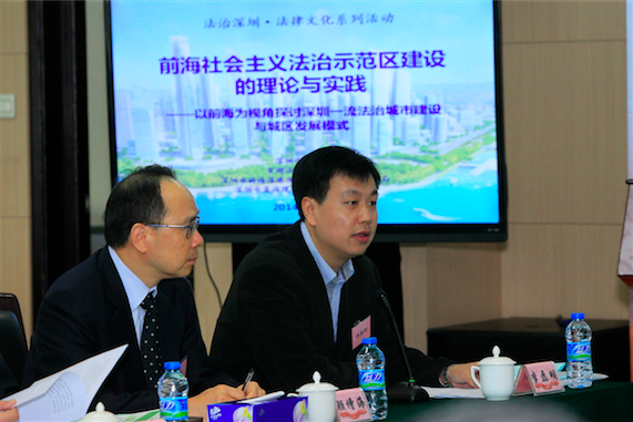 12月7日下午,深圳市法学会、前海深港现代服务业合作区管理局(以下简称前海管理局)、罗湖法律文化书院、深圳市蓝海现代法律服务发展中心(以下简称蓝海中心)联合举办了“建设前海社会主义法治示范区的理论与实践”专题会。